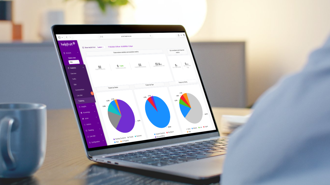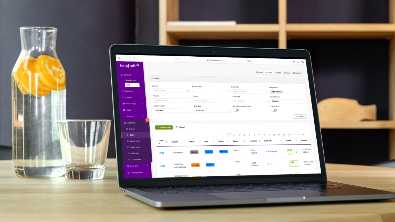 Customer enquiries can move from self-service chatbot conversations (on your website or social channels) to tickets. Helpfruit keeps the context so support staff never have to start back at square one. And customers don’t have to repeat themselves.